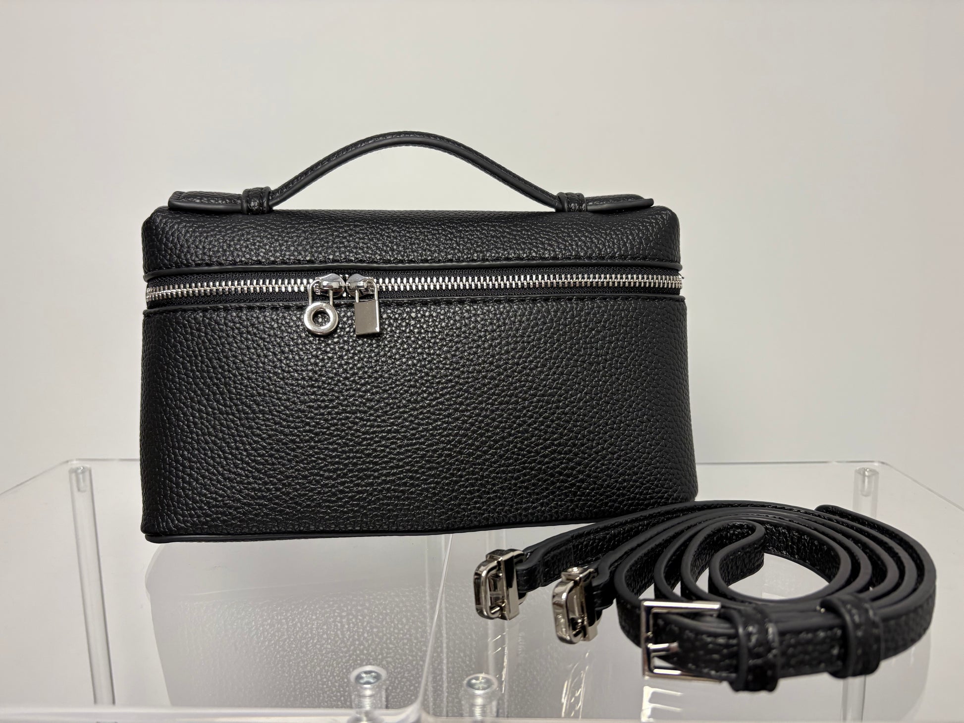 Silver details, with a strap to wear it as a crossbody